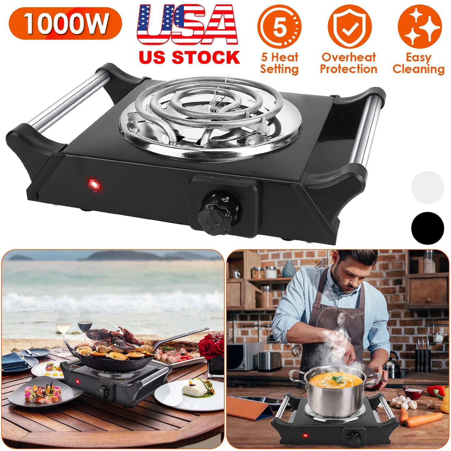 Home > 1000W Electric Single Burner Portable Coil Heating Hot Plate Stove Countertop RV Hotplate with 5 Temperature Adjustments Portable Handles